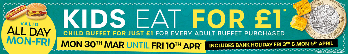 *Terms & Conditions: Each full-paying adult buffet purchase qualifies for one kids’ buffet meal at the price of £1. Offer not valid for children over the age of 9. You MUST pre-book to avail this offer. Offer must be redeemed during the same seating. Employees of Jimmy Spice’s are excluded from participation. Offer cannot be combined with other offers or vouchers. Maximum discount £50. The promoter reserves the right to amend or withdraw any part of the promotion as deemed necessary due to circumstances out of its control. Acceptance of this offer is at the discretion of the restaurant manager. Restaurant reserves the right to ask for a valid identification as a proof of age.